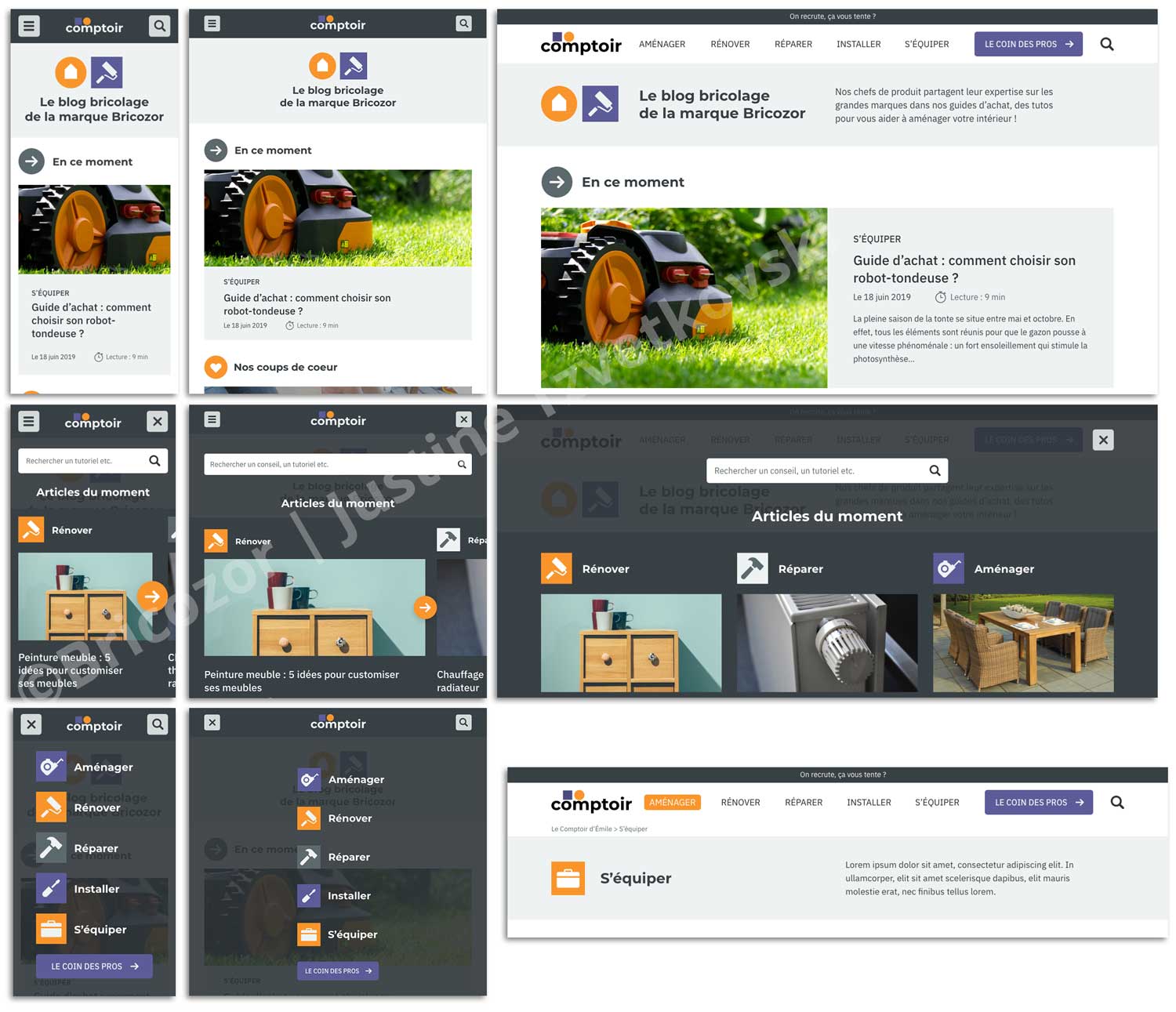 - Le style du menu (ouvert sur mobile), de la recherche et de tout élément qui se retrouve partagé sur toutes les pages (avec des états au survol)