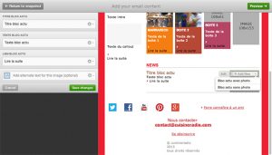 Toutes ces contraintes rendent la création de newsletter complexe, mais de nombreuses solutions sont apparues. Nous avons choisi d’utiliser Campaign Monitor, un outil permettant de créer des modèles d’emails simples à personnaliser et disposant d’une grande avance sur ses concurrents. Il suffit de choisir la disposition des blocs et de saisir le contenu pour composer une campagne prête à être envoyée.